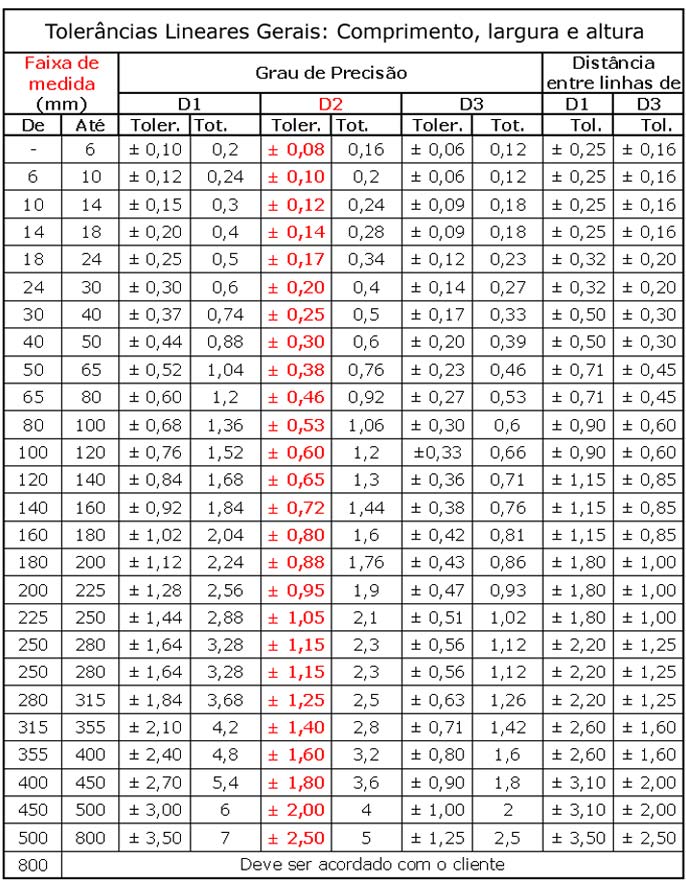 Tolerâncias Lineares Gerais.